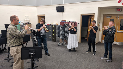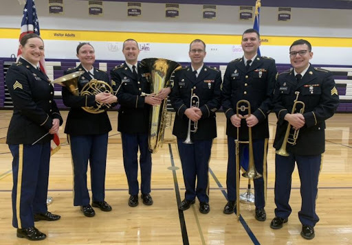 The Denmark High School Band performed with the 132D Army Band Brass Quintet for our Veterans Day Assembly. The quintet played many pieces by themselves, and the band and quintet together played “Amber Waves of Grain” and “Salute to America’s Finest”. Amber Waves of Grain is a rendition of the popular Veterans Day song “America the Beautiful” and Salute to America’s Finest is a song representing every military branch's official song. The band spent many weeks practicing these songs as individual concert and symphonic bands. We practiced the music as one combined band just a day before the performance during a 32 minute class period. What a great performance for all the practice the band put into it! The assembly itself included many performances from both the band and choir, and individual performances from the brass quintet. It also featured a guest speaker talking about his service in the military and his experiences serving in Europe. Towards the end of the ceremony, awards were given out to 2 students for writing an essay for the patriots pen essay contest. The first place winner got 100 dollars and a certificate and the second place winner got 50 dollars and a certificate. The assembly wrapped up with a moment of silence for all fallen soldiers and the playing of taps by a member of the brass quintet. After the assembly, SSG Ben Warmuth, a trumpet player from the brass quintet stayed around to give lessons to some trumpet players in the high school band. One student, Alex Fredrickson, who was part of the lesson stated, “In our trumpet lesson with SSG Warmuth, he talked about not only how we could improve as trumpet players, but he also talked about what it was like to be in the Army and to be a band teacher”. SSG Warmuth also stayed around during both band classes to let kids ask questions and to play some of the winter concert music with them. Thank you to everyone who took strides to make our assembly happen and thank you to all active service members and veterans for your great sacrifices for our country! |