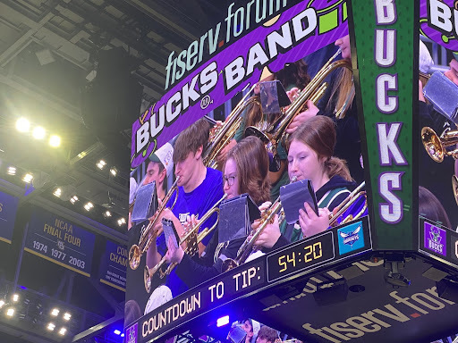 The Denmark HS Band had another amazing experience down in Milwaukee at the Bucks game last week. The Band had the privilege to be selected as a “Bucks Band” ensemble for the second year in a row. The Band got to play some of our favorite pep band tunes courtside during the warmup period, entertaining both the players and spectators. The performance was awesome! This year the Denmark Choir was also chosen to sing the National Anthem. The Choir honored our Nation with a stirring rendition of the Star Spangled Banner in front of an audience of almost 18,000 NBA fans. The Denmark Music Students represented our community well and are looking forward to hopefully performing for Milwaukee and the Bucks again!